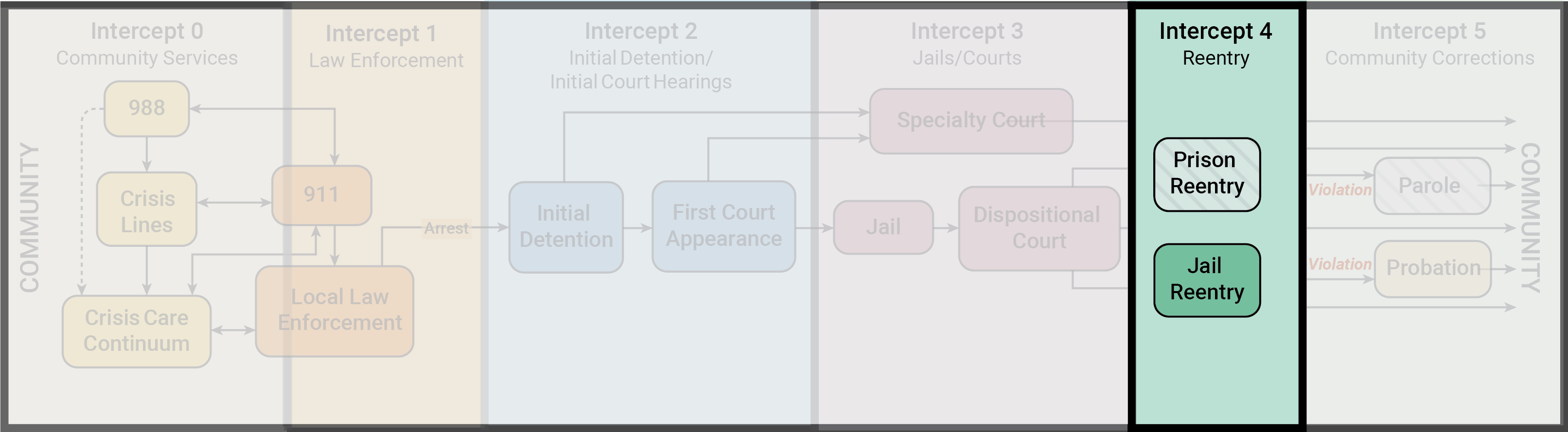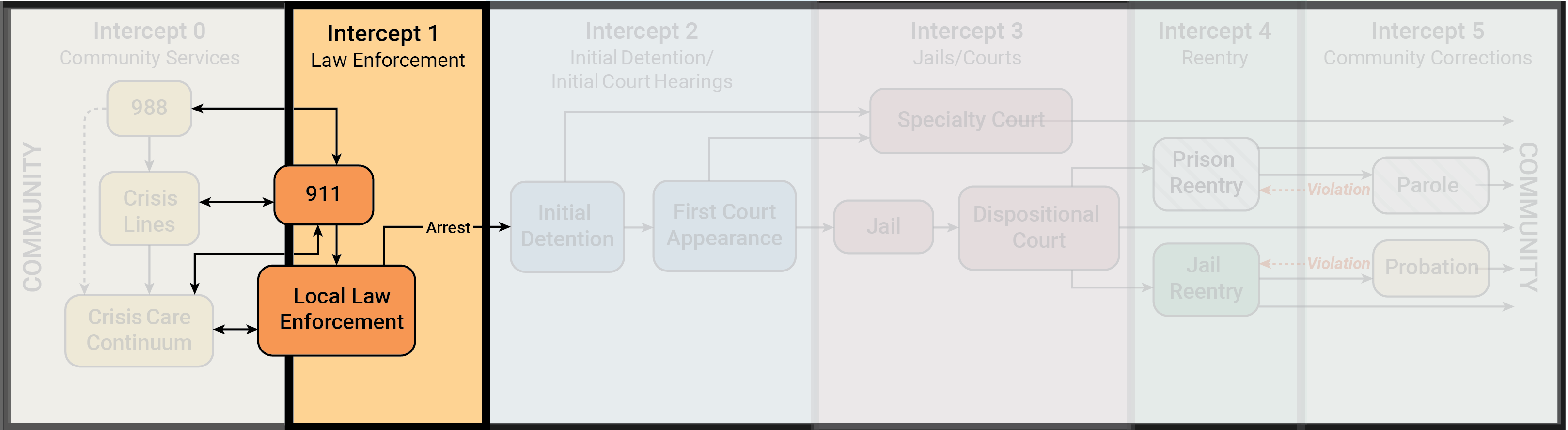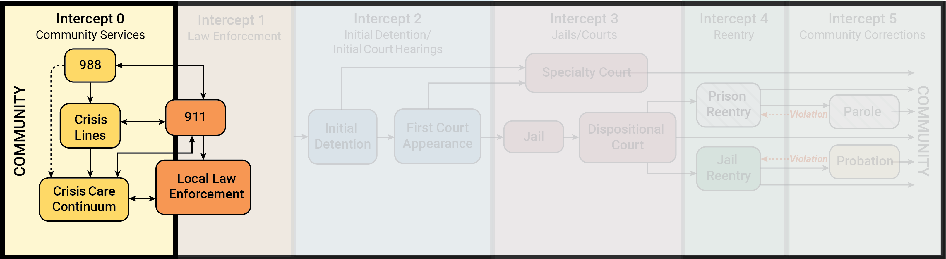 - Identify gaps, resources, and opportunities at each intercept for adults with mental and substance use disorders.